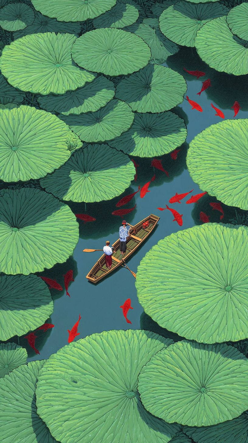 تباين لوني نابض للون الأخضر (#9eb837) والأصفر (#dcec90) والأخضر الفاتح. وو جوانغ زونغ، المناظر الطبيعية الريفية، أشجار الصفصاف الكبيرة، أشعة تيندال، الإشعاع، الحد الأدنى، أسلوب الحد الأدنى، تدرج منتشر، الأخضر الفاتح، رسمه غاري بونت، هنري روسو، جي يونغ بارك، تشين جيالينغ، ميكرو سوبر، خطوط متمايلة، شخص صغير جداً يقفز، كون على شكل سمكة بلون النعناع الأخضر، مع الكثير من الأسماك الخضراء بالنعناع، والنعناع الأخضر عن بُعد، بأسلوب تاتسورو كيوتش. لا أشخاص، هذه الصورة الخيالية تتميز بمشهد عالٍ الدقة، مفصل للغاية، ذو واقعية مفرطة، سريالي، وحالم.