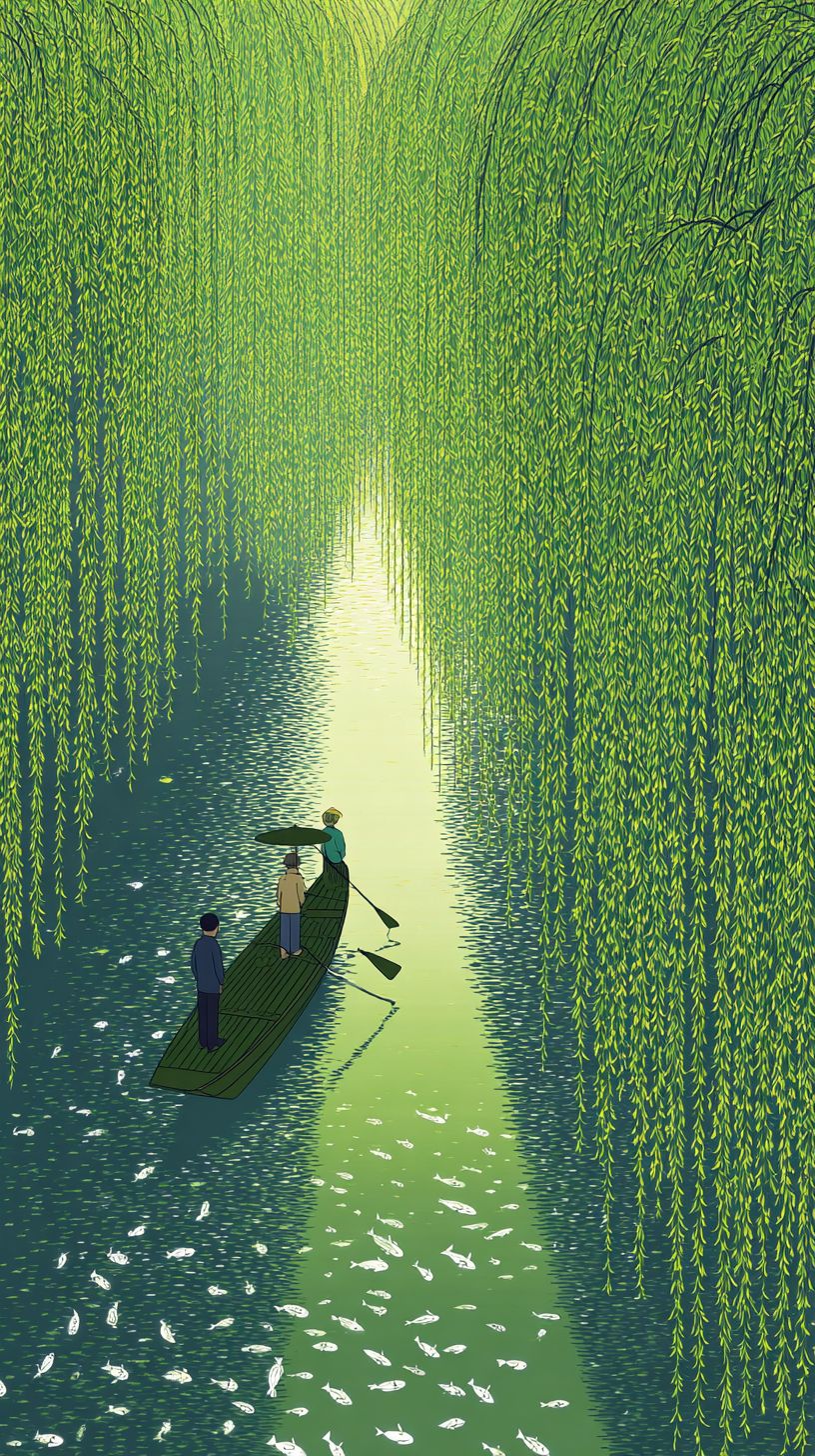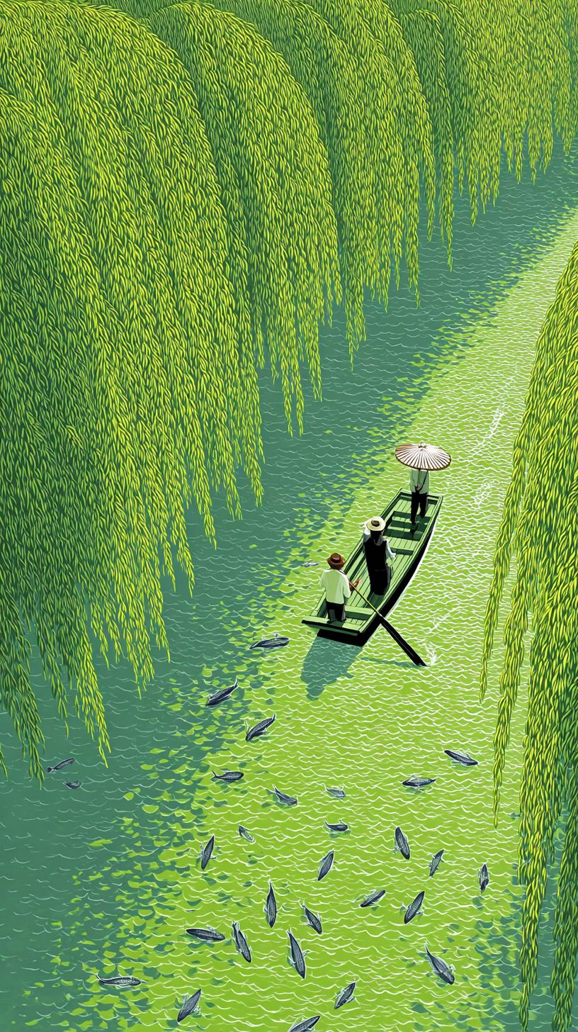 بحيرة كهرمانية بأسلوب الرسوم المتحركة مع الانعكاسات البلورية، مشهد مائي سحري بسيط، تأثيرات ضوئية متوهجة على السطح، مساحة سلبية نظيفة في التركيب، مزاج هادئ لمشهد صيفي بأسلوب الرسوم المتحركة، عرض مائي تفصيلي للغاية، عالية الدقة، خلفية مذهلة