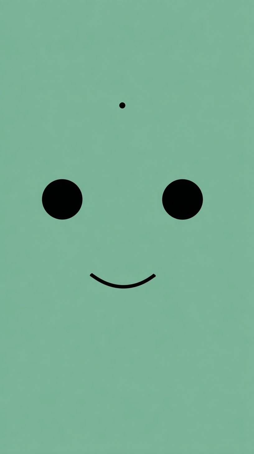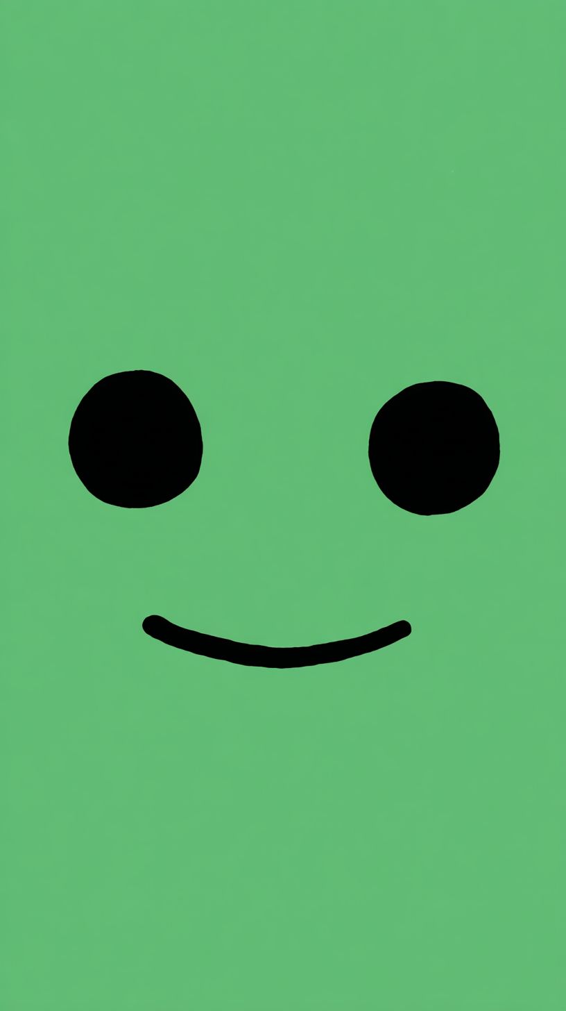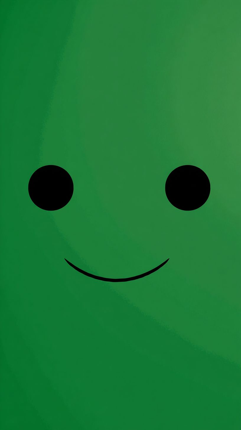 Handyhintergrund-Download :Grüner Hintergrund mit nur zwei schwarzen Punkten als Augen und einer lächelnden Linie im Vordergrund.