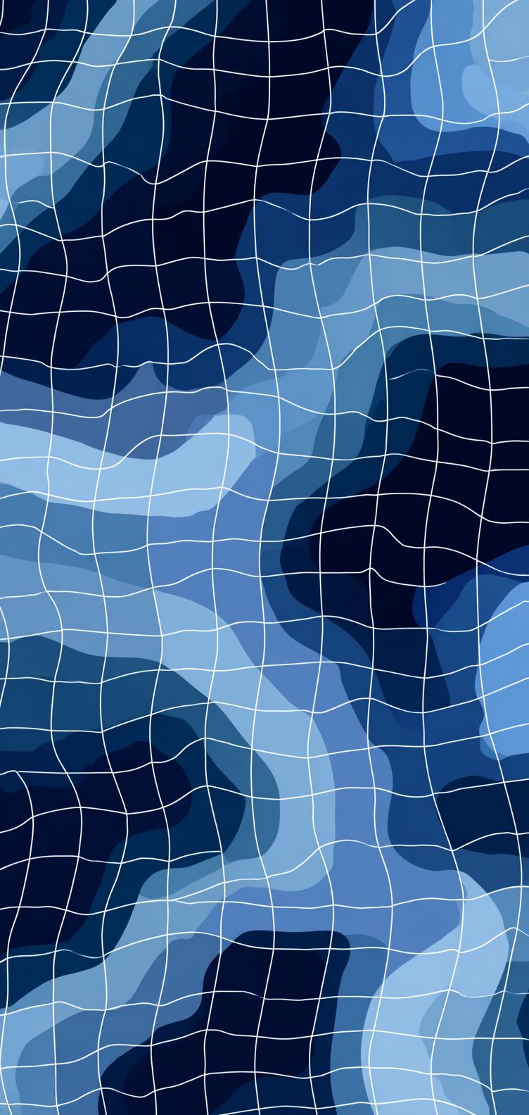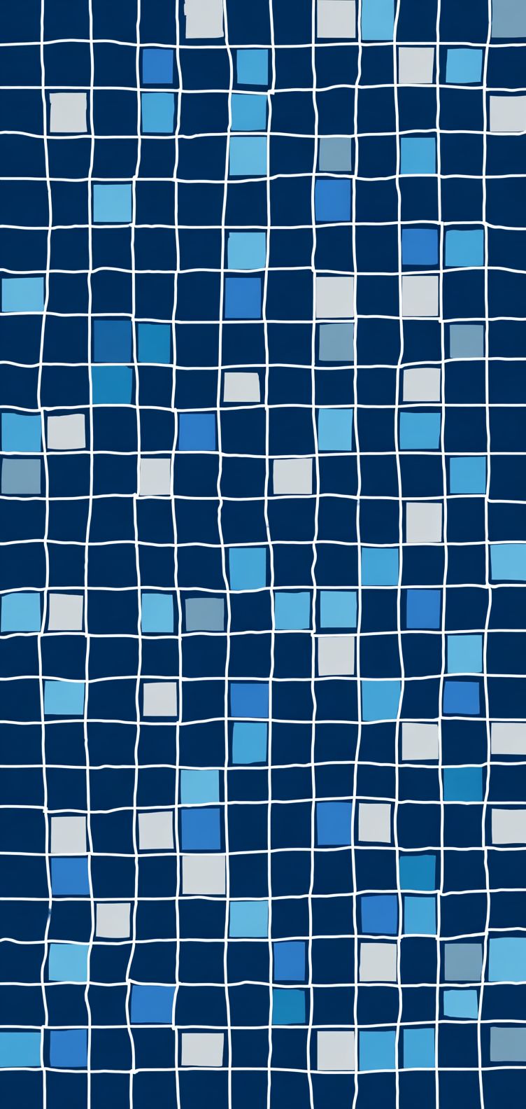 Download de papel de parede para celular :Um padrão sem emenda com uma ilustração digital de uma grade quadrada, com bordas finas e onduladas, em tons de azul contra um fundo marinho, em um estilo de design fofo e plano, como um arquivo vetorial com linhas limpas, uma composição minimalista, formas simples, cores pastel, uma paleta monocromática, tons de cor de baixa saturação e um estilo de expressão abstrata, adequado para impressão de papel de parede minimalista.