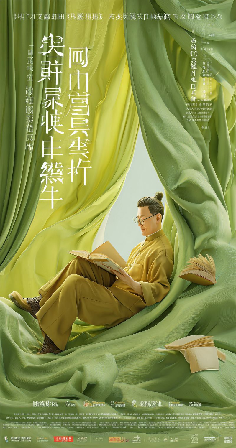 手机壁纸 :一张以“教师节是为了所有努力让我们感到生活在一个美好世界的人们”为主题的海报,背景是绿色的窗帘和淡黄色的色调,营造出温暖的氛围,海报上有一个中国男性形象坐在上面,正在阅读他的书。